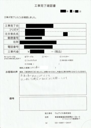 お客様の声 |東京都墨田区のお客様の声
