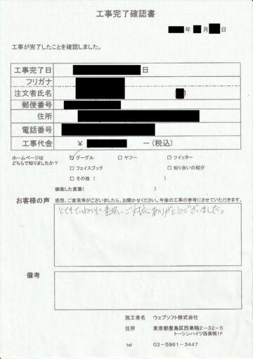 お客様の声 |東京都墨田区のお客様の声